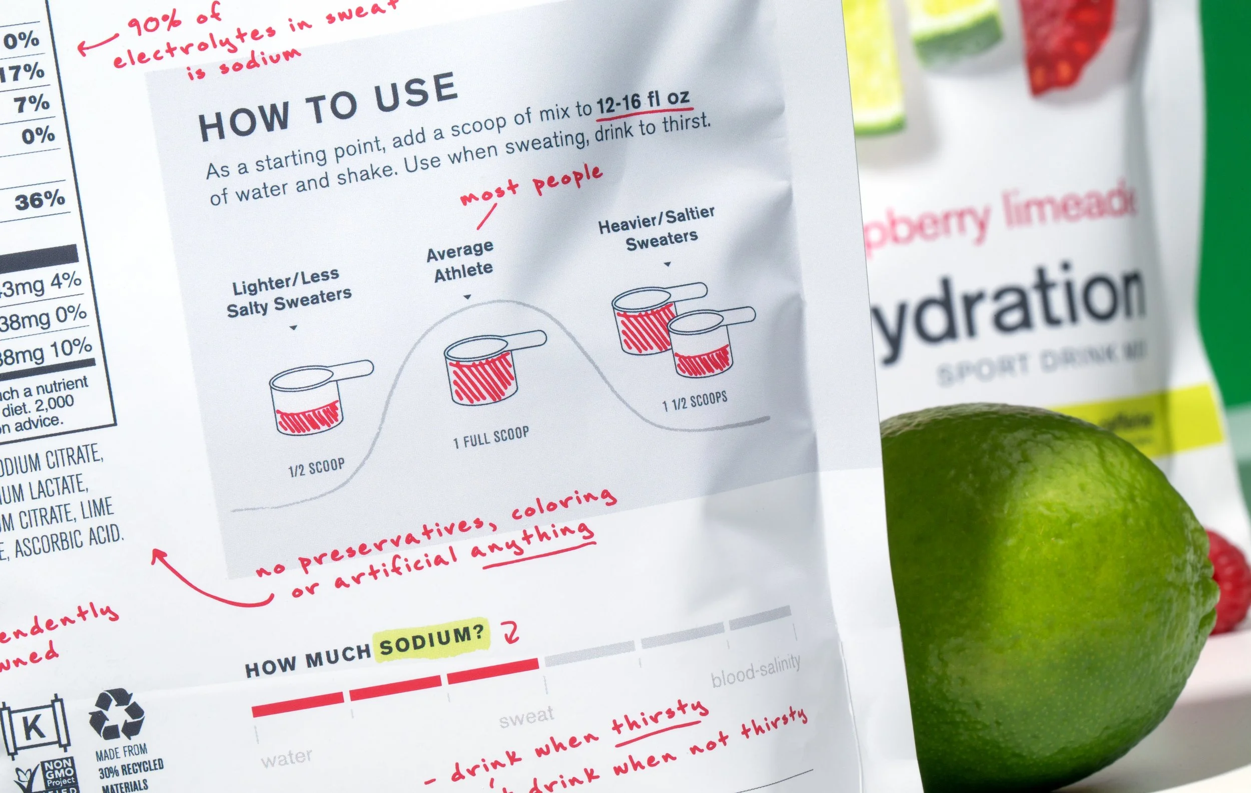 Skratch Labs came to us looking for a visual refresh for the brand and a design systemization for their sports nutrition portfolio. With an existing loyal fan base, we knew we had to maintain the brand’s unique mix of personable authenticity and expert authority, while also looking to grow into new markets. After research and consumer testing, we set out to visualize – and systematize – the brand as the balance between technical but approachable, performance driven but also fun, real food and scientific solutions. Within the brand this tightrope to walk comes to life in myriad ways: our technical breakdowns paired with friendly handwritten notes, our broad variety of touchpoints and products, and in many ways both subtle and larger within our visual system.